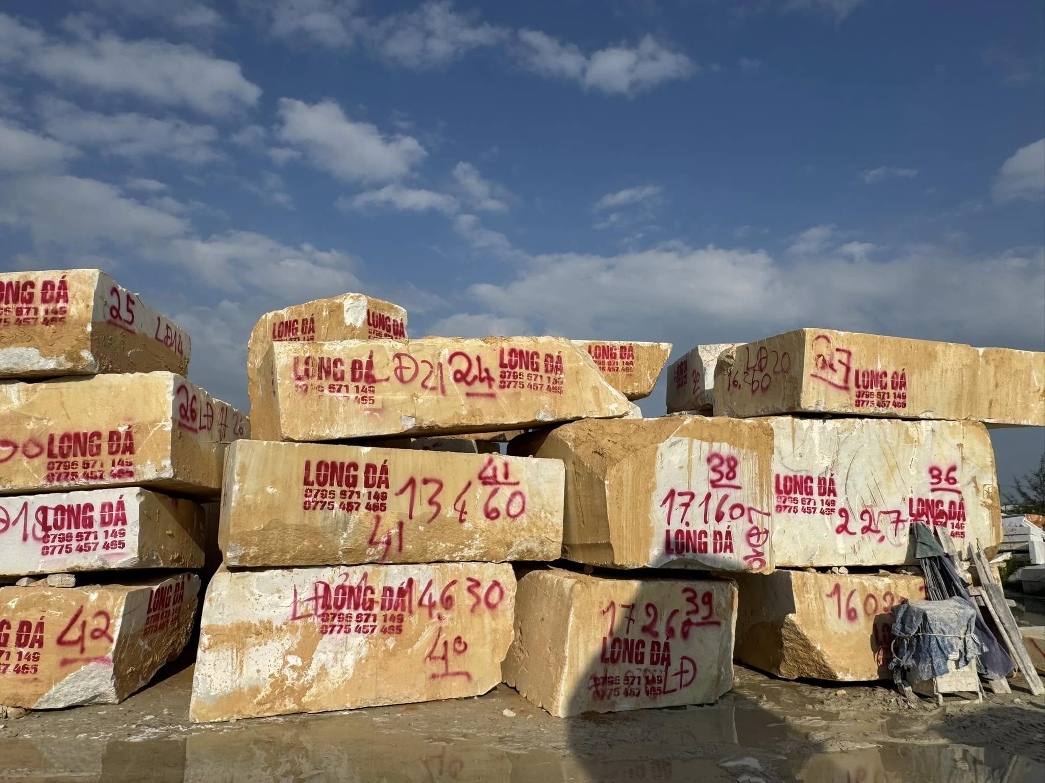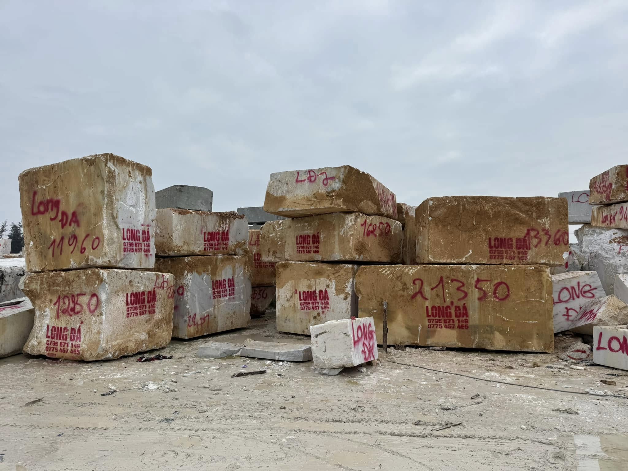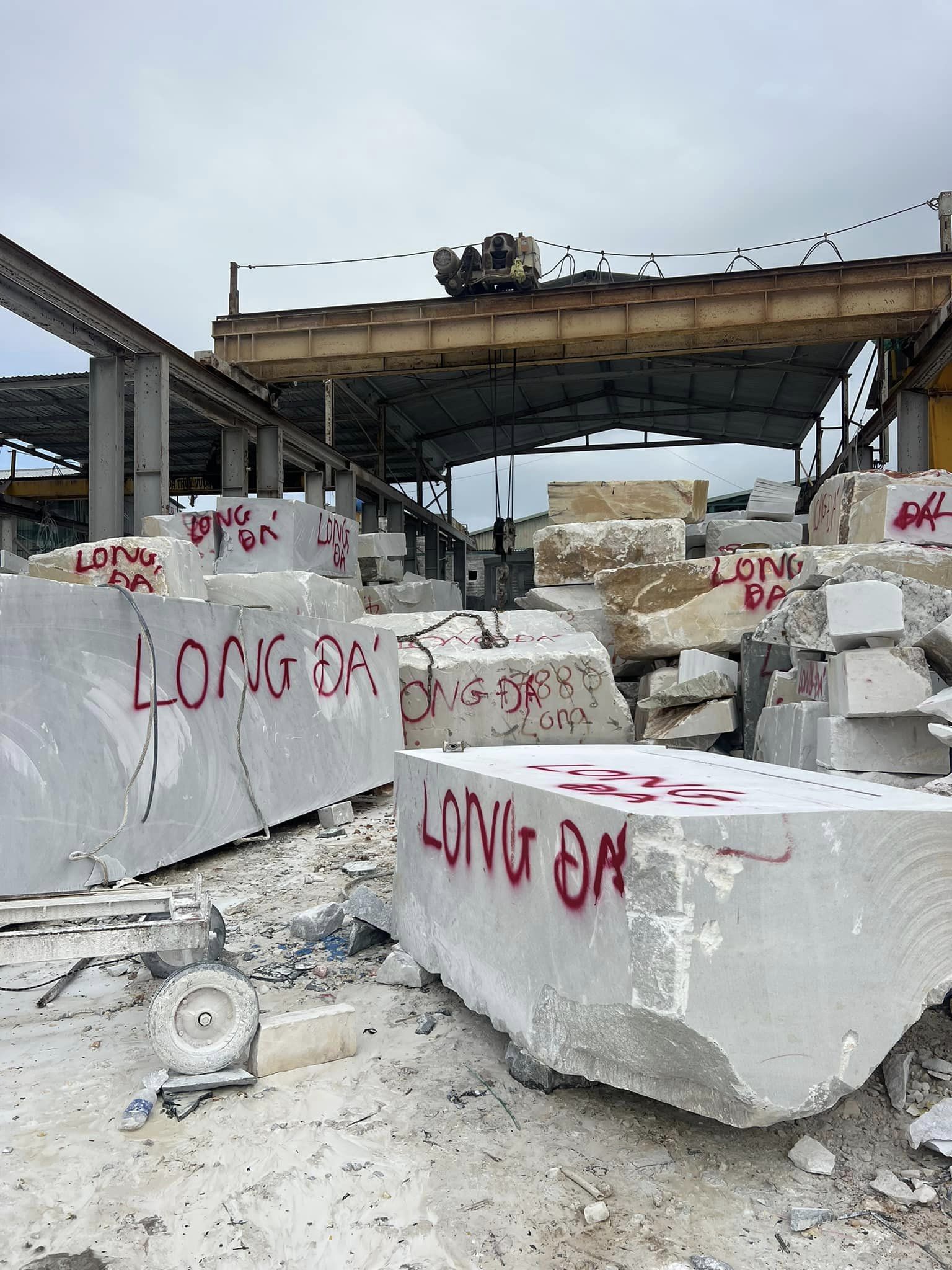 Bãi đá của Cơ Sở Điêu Khắc Đá Mỹ Nghệ Long Đá hiện lên như một kho báu thiên nhiên, nơi lưu giữ những khối đá nguyên khối quý giá được tuyển chọn từ nhiều vùng mỏ trong và ngoài nước.