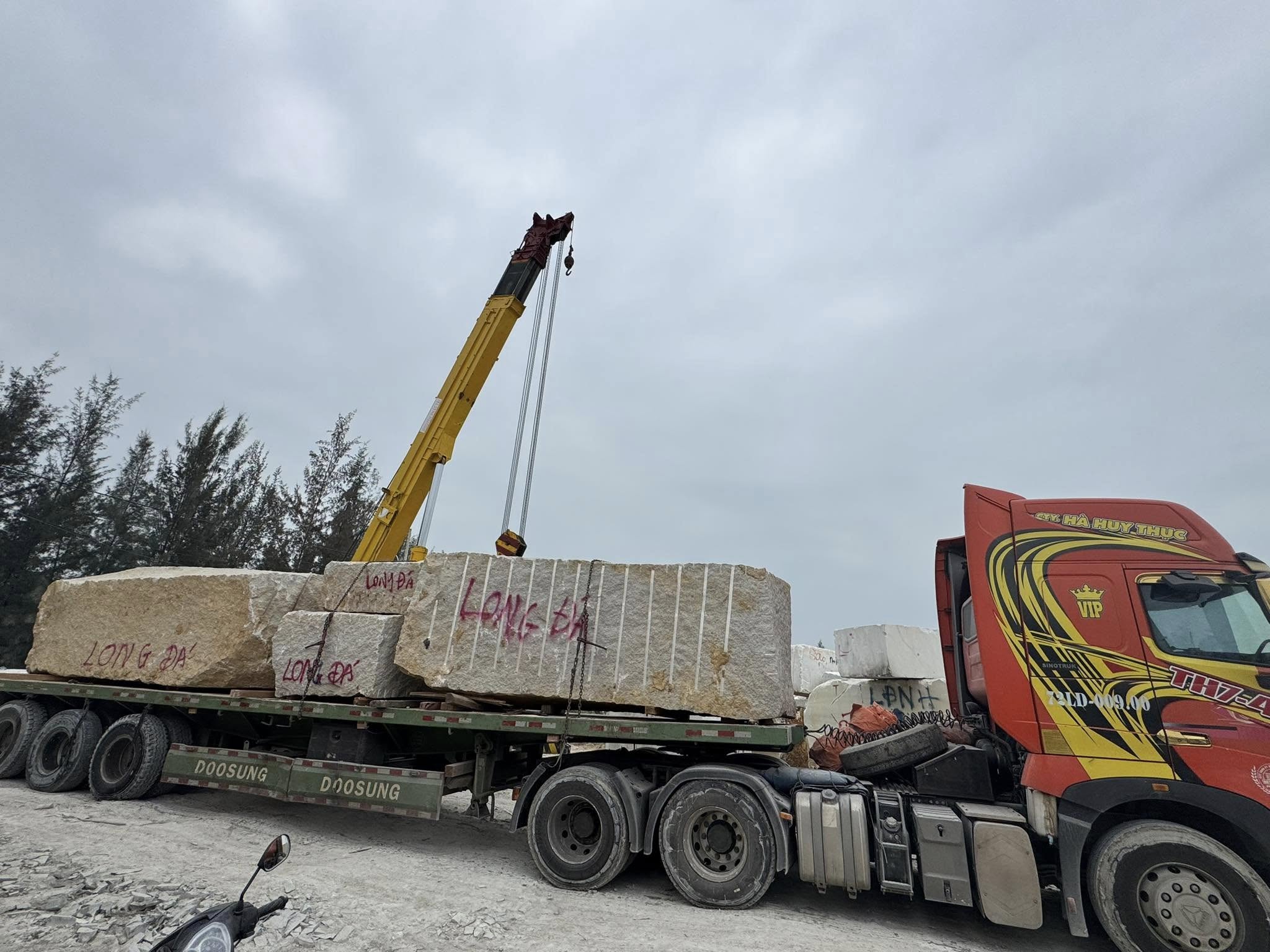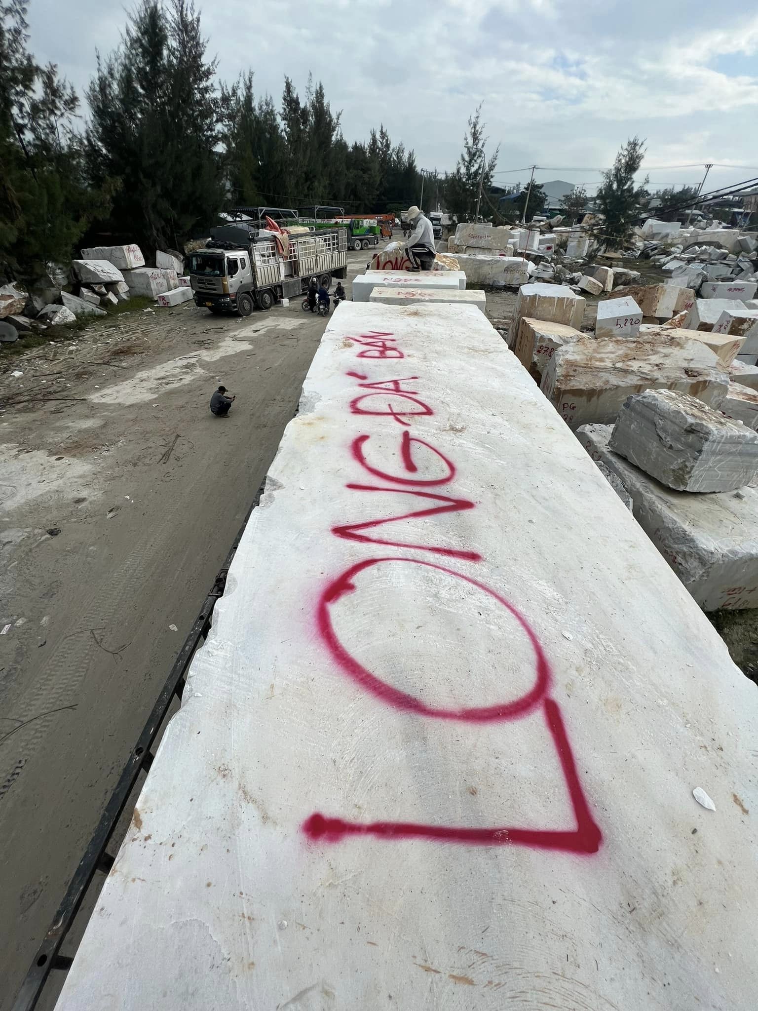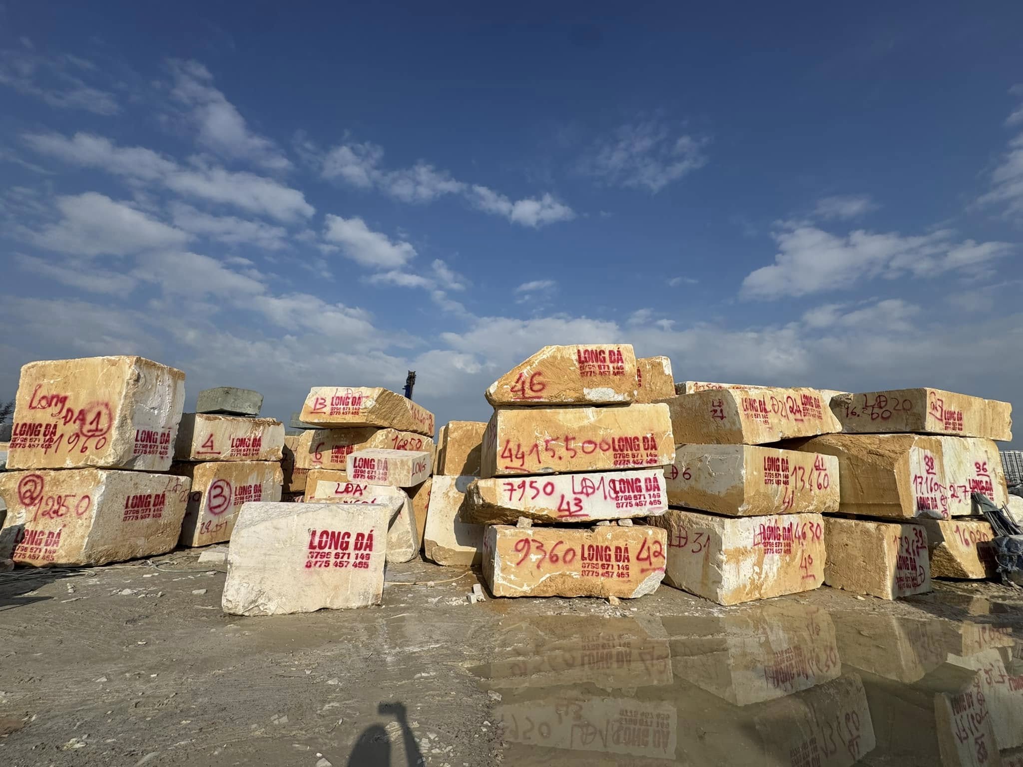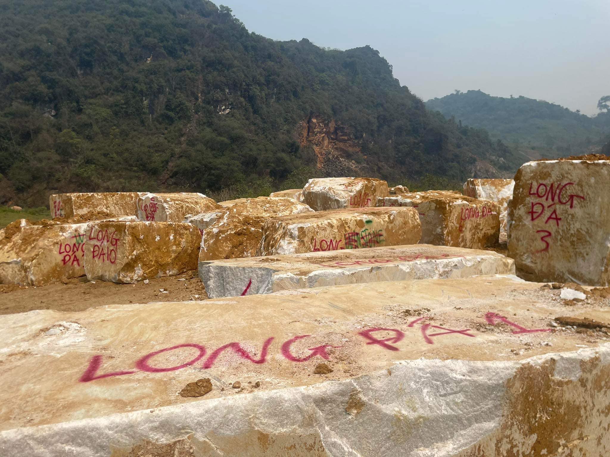 Bãi đá của Cơ Sở Điêu Khắc Đá Mỹ Nghệ Long Đá hiện lên như một kho báu thiên nhiên, nơi lưu giữ những khối đá nguyên khối quý giá được tuyển chọn từ nhiều vùng mỏ trong và ngoài nước.