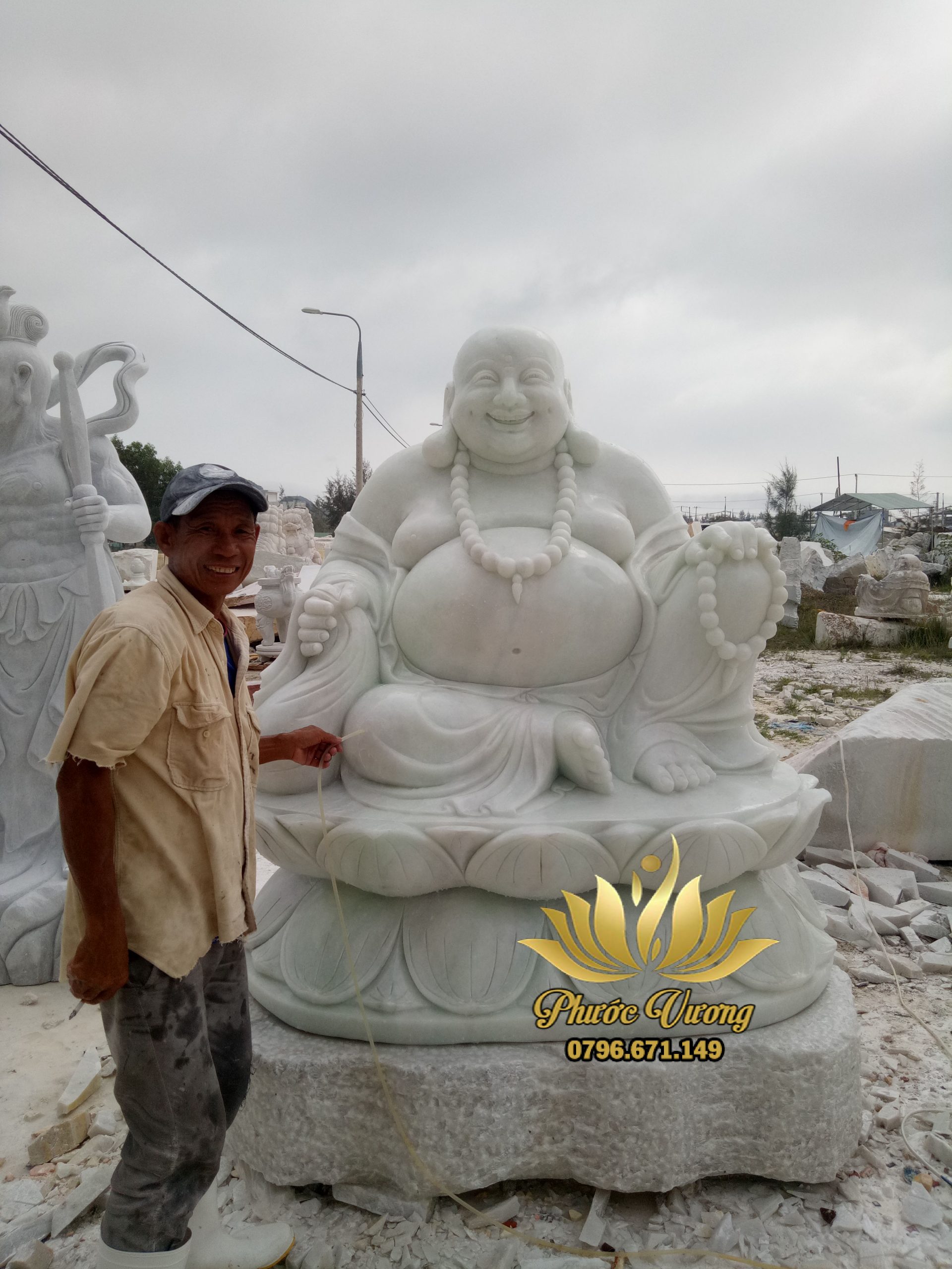 Tượng Phật Địa Tạng Vương Bồ Tát Đá Cẩm Thạch Nguyên Khối Đẹp
