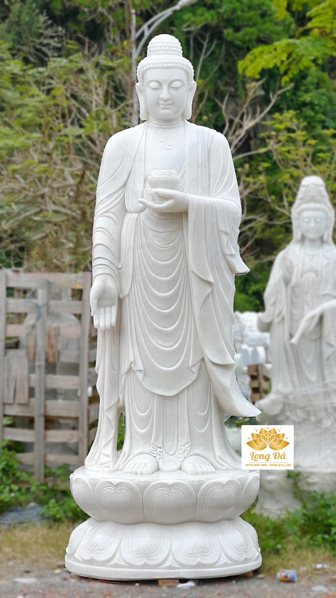 TƯỢNG PHẬT A DI ĐÀ BẰNG CHẤT LIỆU ĐÁ TRẮNG CẨM THẠCH NGUYÊN KHỐI
