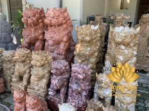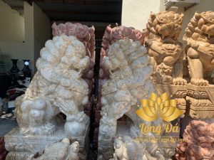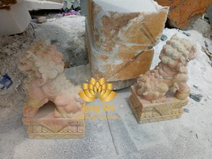 Cũng có khi linh vật này lại xuất hiện trong hình dạng của một con Hoẵng, mang trên mình vảy cá dài khắp thân,… Tượng Lân Đá Cẩm Thạch