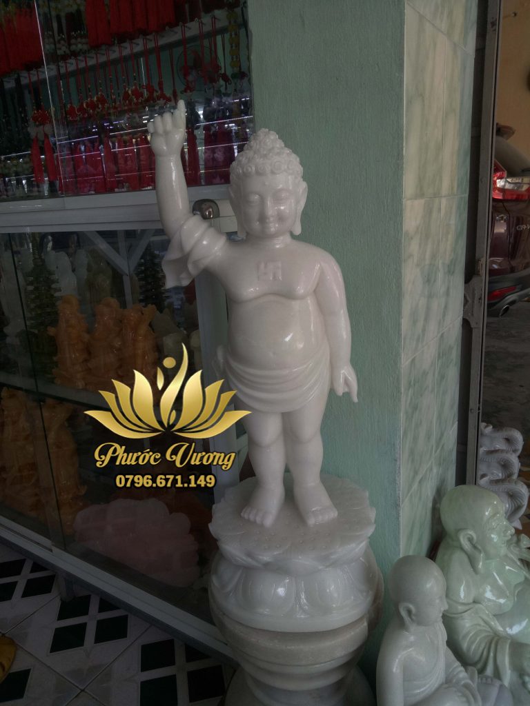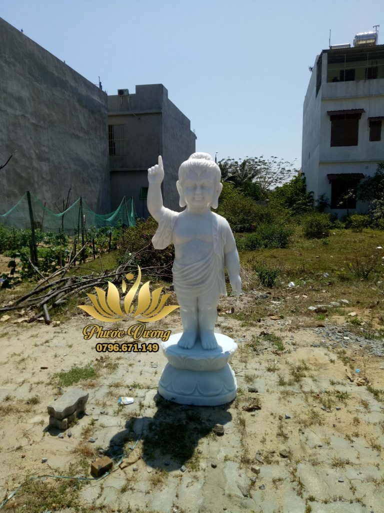 Tượng Đức Phật Đản Sanh là tượng thể hiện hình tướng khi ngài vừa mới sinh ra ở vườn Lâm Tì Ni, Ngài đã bước đi 7 bước, có 7 đoá sen dưới chân nâng gót chân Ngài. Khi bước 7 bước, một tay Ngài chỉ lên trời, 1 tay ngài chỉ xuống đất, dõng dạc cất cao tiếng Sư tử hống “Thiên Thượng Thiên Hạ Duy Ngã Độc Tôn – Nhất thiết Thế gian, sinh lão bệnh tử”.
