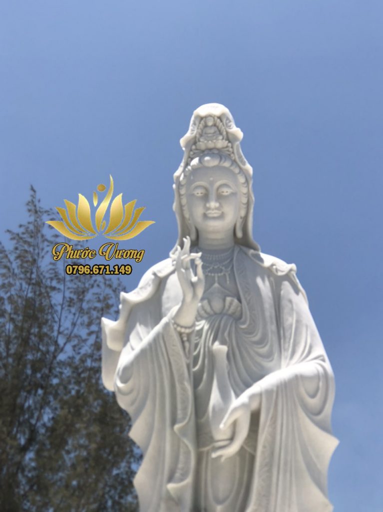 Tượng Phật Bà Quan Âm bằng đá còn tượng trưng cho điềm lành, lòng thánh thiện, bao dung, hướng phật. Khuôn mặt của ngài rất phúc hậu, khi nhìn vào tượng sẽ thấy vui vẻ, ấm áp hơn.
