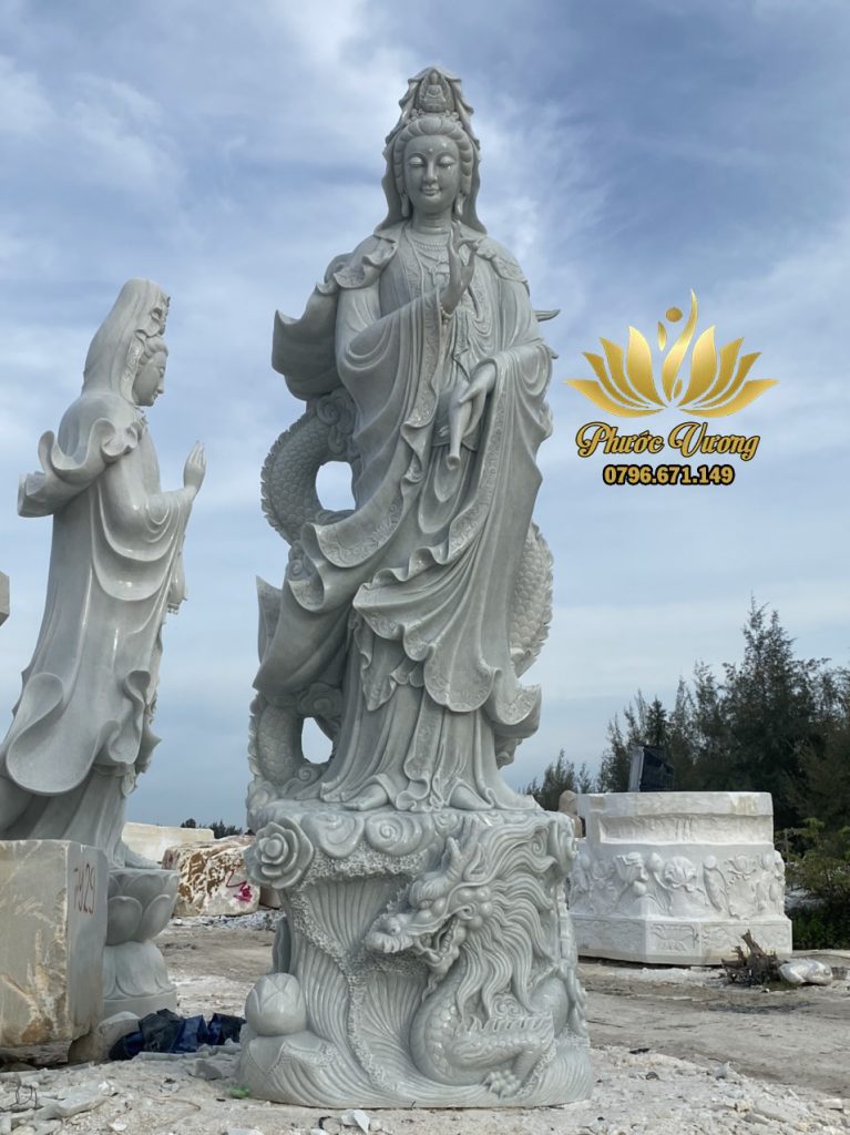 Với yếu tố là nguyên liệu đá tự nhiên, cứng, bền vững, màu sắc tươi và bền đẹp dưới nắng mưa, trường tồn với thời gian,… cũng là yếu tố quyết định tượng quan âm bằng đá được nhiều người tin dùng.